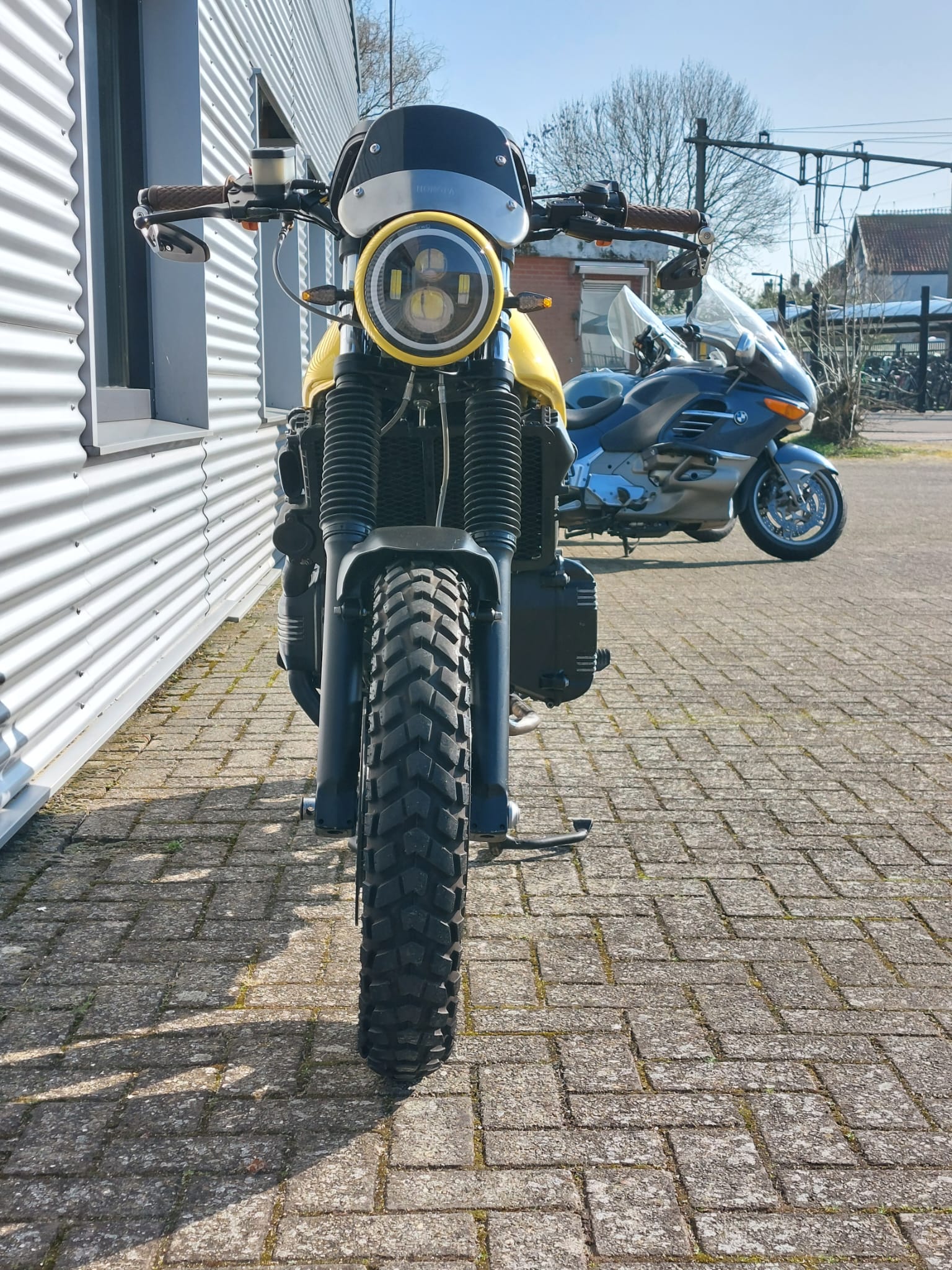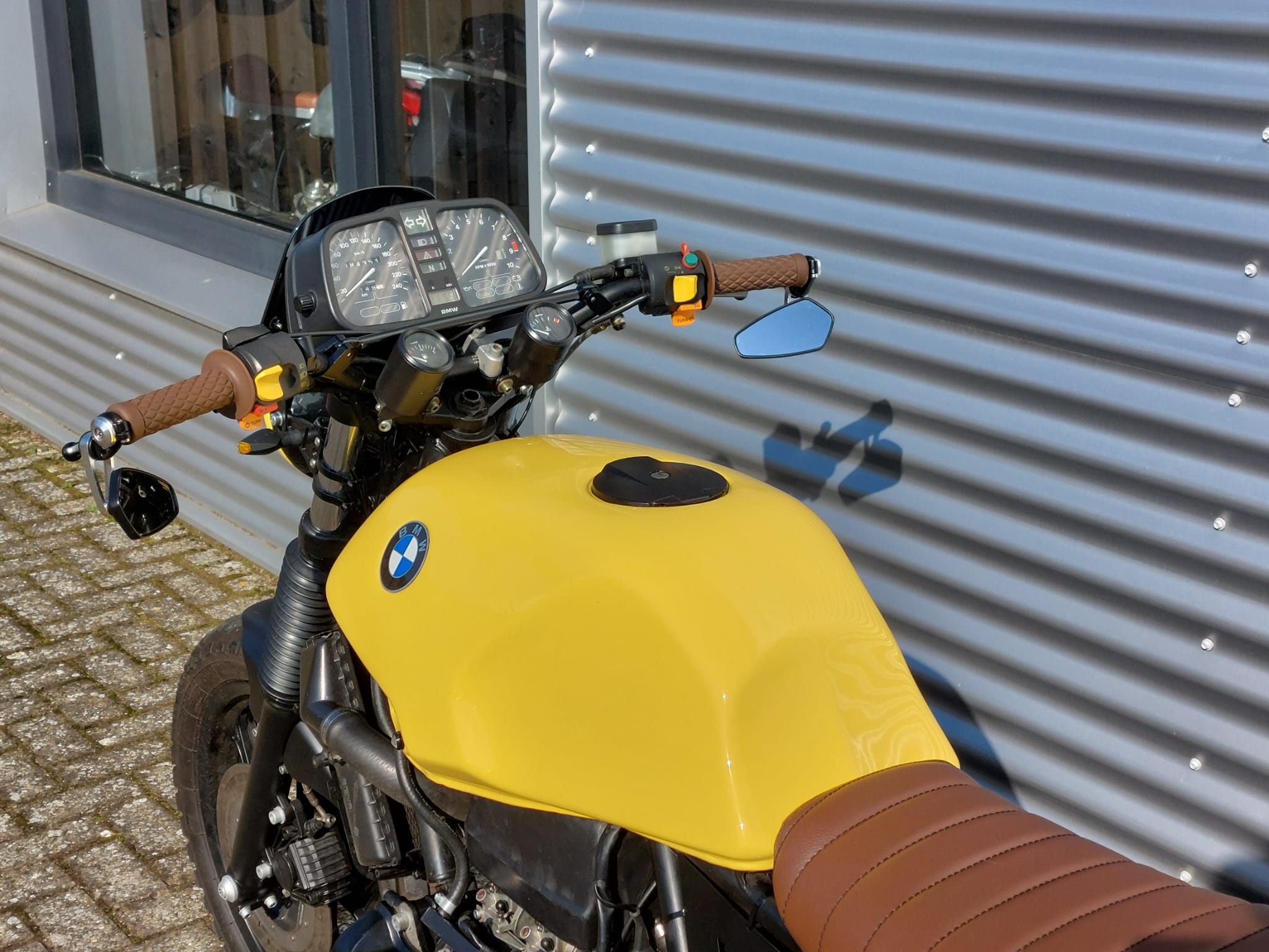 Een trouwe knalpot klant met jaren ervaring heeft dit pareltje helemaal van nul opgebouwd. Wat oorspronkelijk begon als een BMW K 75 RT is nu een zonnige café racer geworden dat vele glimlachen op mensen hun gezicht tovert.